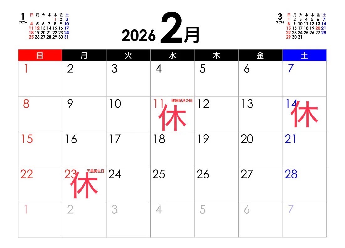 2,11 2,23祝日の為お休み